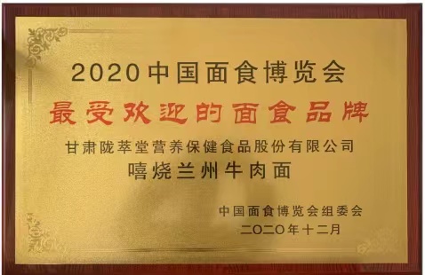 2020面食博览会最受欢迎的面食品牌奖